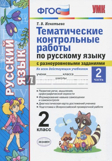 ТЕМАТИЧЕСКИЕ КОНТРОЛЬНЫЕ РАБОТЫ ПО РУССКОМУ ЯЗЫКУ С РАЗНОУРОВНЕВЫМИ ЗАДАНИЯМИ. 2 КЛАСС. ЧАСТЬ 2. ФГОС.