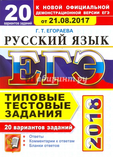 Пособие содержит 20 вариантов типовых тестовых заданий по русскому языку. Все задания составлены с учётом особенностей и требований Единого государственного экзамена в 2018 году.