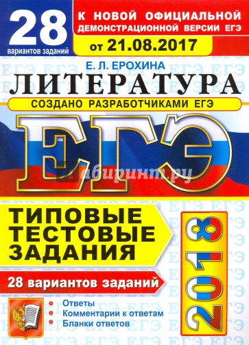 ЕГЭ 2018. ЛИТЕРАТУРА. 28 ВАРИАНТОВ. ТИПОВЫЕ ТЕСТОВЫЕ ЗАДАНИЯ ОТ РАЗРАБОТЧИКОВ ЕГЭ. 28 вариантов заданий. Ответы. Комментарии к ответам. Бланки ответов.