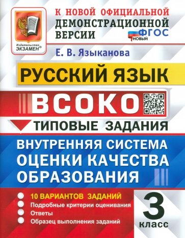 РУССКИЙ ЯЗЫК. ВСОКО. ВНУТРЕННЯЯ СИСТЕМА ОЦЕНКИ КАЧЕСТВА ОБРАЗОВАНИЯ. 3 КЛАСС. ТИПОВЫЕ ЗАДАНИЯ. 10 вариантов заданий. Подробные критерии оценивания. Ответы. Образец выполнения заданий. ФГОС.