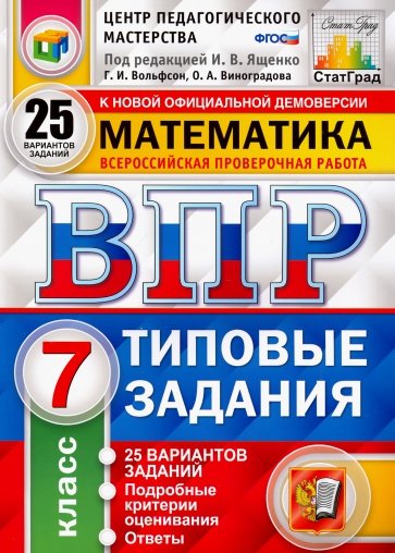 Данное пособие полностью соответствует федеральному государственному образовательному стандарту (второго поколения). Книга содержит 25 вариантов типовых заданий Всероссийской проверочной работы (ВПР) по математике для учащихся 7-х классов. Сборник предназначен учащимся 7-х классов, учителям и методистам, использующим типовые задания для подготовки к Всероссийской проверочной работе по математике.
