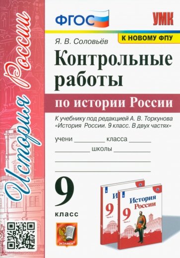 Данное пособие полностью соответствует федеральному государственному образовательному стандарту (второго поколения) и требованиям Историко-культурного стандарта. Пособие включает контрольные работы по истории России, которые соответствуют содержанию и структуре учебника "История России. 9 класс" под редакцией А. В. Торкунова (издательство "Просвещение"). Задания можно использовать для обучения и самоконтроля учащихся, проверки домашних заданий, текущего и итогового контроля, а также постепенной подготовки к ОГЭ. Ко всем заданиям даны ответы. Я. В. Соловьёв - кандидат исторических наук, доцент Московского государственного областного университета, автор пособий по истории России.