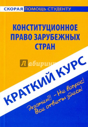 Настоящее издание представляет собой учебное пособие, подготовленное в соответствии с Государственным образовательным стандартом по дисциплине "Конституционное право зарубежных стран". Материал изложен кратко, но четко и доступно, что позволит в короткие сроки успешно подготовиться и сдать экзамен или зачет по данному предмету.