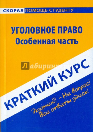 Настоящее издание представляет собой учебное пособие, подготовленное в соответствии с Государственным образовательным стандартом по дисциплине "Уголовное право. Особенная часть". Материал изложен кратко, но четко и доступно, что позволит в короткие сроки успешно подготовиться и сдать экзамен или зачет по данному предмету.