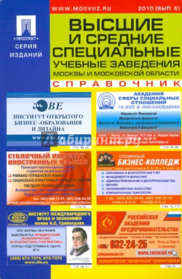 Уважаемые читатели, перед вами специализированное справочное издание о более чем 500 специальностей обучения, 300 высших и средних специальных учебных заведениях, подготовительных курсах, втором высшем образовании, учебных центрах Москвы и Московской области.