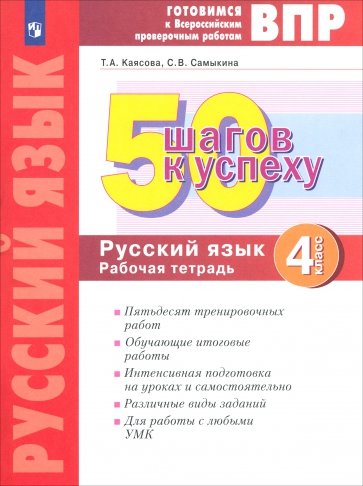 Рабочая тетрадь "50 шагов к успеху. Русский язык. 4 класс" предназначена для подготовки выпускников начальной школы к Всероссийской проверочной работе (ВПР) по русскому языку.