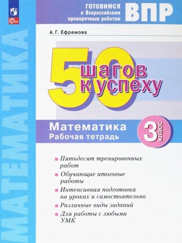 Рабочая тетрадь предназначена для индивидуальной подготовки учащихся 3 класса к итоговым контрольным работам за год, а также к успешному выполнению Всероссийской проверочной работы по математике за курс начальной школы. В отличие от аналогичных изданий, построенных по тематическому принципу, предлагаемое пособие состоит из 50 тренировочных работ, задания которых обобщают учебный материал по основным разделам программы и соответствуют требованиям к достижению планируемых результатов обучения математике за курс 3 класса. Выполнение одной тренировочной работы рассчитано на 10-15 минут. Это позволяет учителю легко включить их в ход урока при организации обобщающего повторения, а учащимся интегрировать знания из различных тем программы. Кроме тренировочных заданий, в тетради также даны две обучающие итоговые работы, состоящие из 12 заданий. Они максимально приближены по структуре и уровню требований к варианту Всероссийской проверочной работы по математике. Учащиеся могут работать в тетради как в классе под руководством учителя, так и самостоятельно дома под контролем родителей. Пособие разработано в соответствии с требованиями ФГОС НОО и может использоваться при работе с любыми УМК.