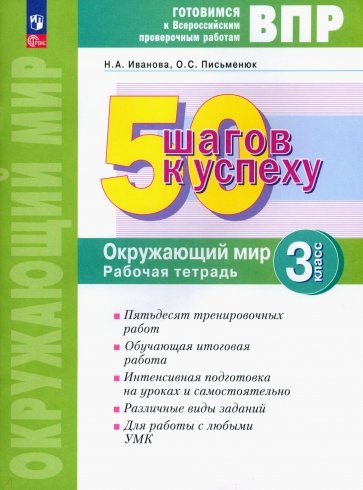 Рабочая тетрадь предназначена для подготовки третьеклассников к успешному выполнению годовых итоговых работ по окружающему миру, в том числе - к Всероссийской проверочной работе за курс начальной школы. В отличие от других подобных изданий, построенных на повторении ранее изученного материала по тематическому принципу, в тетради "50 шагов к успеху" предлагаются тренировочные работы, каждая из которых включает по два-четыре упражнения из нескольких разделов учебного курса. Это позволяет в течение всего процесса подготовки уделять внимание трем основным темам, изучаемым в начальной школе на уроках окружающего мира: "Человек и природа", "Человек и общество" и "Правила безопасной жизни", а также дает возможность детям постепенно привыкнуть к структуре ВПР. Тренировочные работы выполняются школьниками в классе под руководством учителя на 50 уроках (для этого педагог отводит 10-15 минут в завершающей части занятия) или самостоятельно дома с родителями (для них ответы размещены на сайте издательства). В конце тетради дана итоговая проверочная работа полного цикла (16 заданий), максимально приближенные к реальному испытанию, которое ждет учащихся при выполнении ВПР по окружающему миру. Тетрадь разработана в соответствии с требованиями ФГОС НОО и может использоваться при работе с любыми учебно-методическими комплектами.