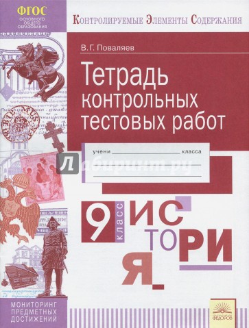 Тетрадь контрольных тестовых работ предназначена для мониторинга предметных достижений девятиклассников по истории России и является частью серии тетрадей, в которую входят аналогичные издания по русскому языку, физике, алгебре, геометрии, биологии, химии, обществознанию.