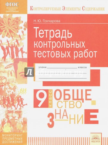 Тетрадь контрольных тестовых работ предназначена для мониторинга предметных достижений девятиклассников по обществознанию и является частью серии тетрадей, в которую входят аналогичные издания по русскому языку, физике, алгебре, геометрии, биологии, химии и истории. Материалы тетради позволяют проверить знания школьников по основным темам курса, а также проводить итоговый контроль. Контрольные тестовые работы представлены в двух вариантах. Все задания разработаны на основе контролируемых элементов содержания, определенных кодификатором ФИПИ по предмету "Обществознание". Коды проверяемых КЭС представлены в начале каждой тестовой работы. В конце тетради размещен краткий методический материал для педагога с планами работ, ответами на задания и системой оценивания. Тетрадь разработана к учебнику "Обществознание", 9 класс (под ред. Л.Н. Боголюбова). Вместе с тем ее материалы могут использоваться и при работе с другими учебно-методическими комплектами. Полная спецификация контрольных тестовых работ с описанием их структуры, типов заданий, ответами, системой оценивания представлена на сайте idfedorov.ru в разделе "Текущий и тематический контроль". Предлагаемые в тетрадях задания являются готовыми контрольно-измерительными материалами для обработки данных мониторинга как в программе MS Excel, так и в автоматизированных информационных системах (АИС). В частности, разработанные на основе кодов КЭС планы тематических тестовых работ, позволяют оптимизировать контрольно-оценочную деятельность учителя, организовать как внутришкольный, так и внешний мониторинг школам, муниципалитетам и регионам, работающим с АИС "Многоуровневая система оценки качества образования (МСОКО)".