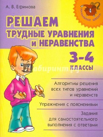 Содержащиеся в книге упражнения охватывают все типы трудных уравнений и неравенств, изучаемые в начальной школе. Книга поможет родителям объяснить своим детям новый или непонятный материал, а детям - закрепить полученные ими знания при самостоятельном выполнении заданий.