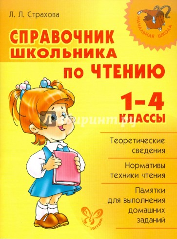 Справочник адресован учащимся начальных классов, а также их заботливым родителям. Пособие содержит обширные справочные сведения по теории литературы, рекомендации по внеклассному (самостоятельному) чтению, словарик литературоведческих терминов. Правила, памятки, руководства и методические рекомендации по выполнению различных школьных заданий помогут правильно и быстро выполнить домашние задания по чтению.