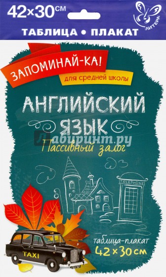 Пассивный залог - одна из сложнейших тем в английском языке. В таблице серии "Запоминай-ка!" очень понятно изложены все правила образования пассивного залога и его употребления в английской речи. Дана наглядная таблица образования пассивного залога по временам, при помощи которой легче ориентироваться, выполняя упражнения на данную тему, не допуская ошибок. Также в материалах плаката указаны предлоги, употребляющиеся при пассивном залоге и глаголы, которые не употребляются в пассиве. Подробная таблица глаголов в инфинитиве с указанием их формы в пассиве также поможет изучающим английский легче освоить эту тему.