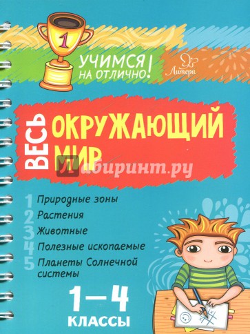 Серия "Учимся на отлично" пополнилась книгой "Весь окружающий мир", предназначенной школьникам, учащимся в 1-4 классах. Несмотря на компактный размер в книге содержится масса полезной школьнику информации. Со страниц книги он узнает о природных зонах нашего мира, растениях и животных, относящихся к каждой из зон. А также о полезных ископаемых и планетах Солнечной системы.