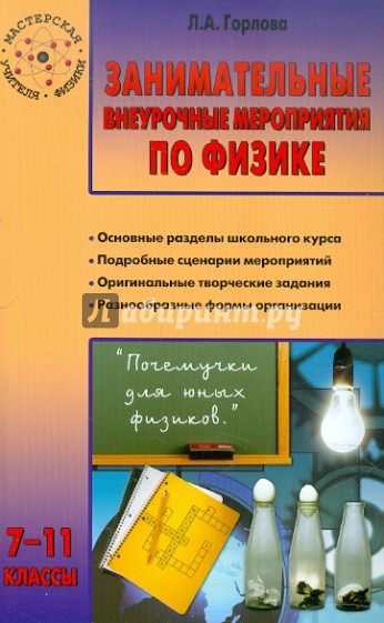 В издании предлагаются апробированные сценарии внеурочных мероприятий по физике для 7-11 классов, которые можно использовать в качестве контроля или обобщения. Конкурсы, игры, физические вечера, викторины, представленные в пособии, не только способствуют привлечению внимания школьников к предмету, но и развивают познавательный интерес и творческие способности учащихся.