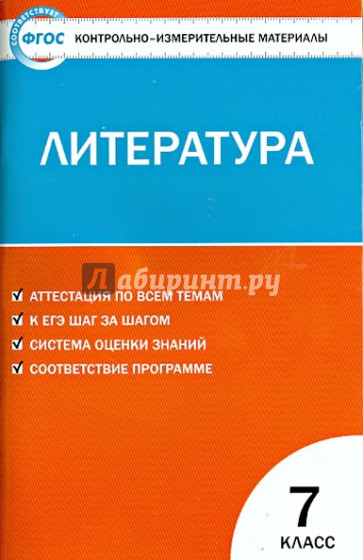 В пособии представлены контрольно-измерительные материалы (КИМы) по литературе для 7 класса. Тесты тематически сгруппированы, соответствуют требованиям школьной программы и возрастным особенностям учащихся. Структура КИМов аналогична структуре тестов в формате ЕГЭ, что позволит подготовить учащихся к работе с подобным материалом. В конце пособия предложены ключи к тестам, а также самостоятельные работы и работы по развитию речи.