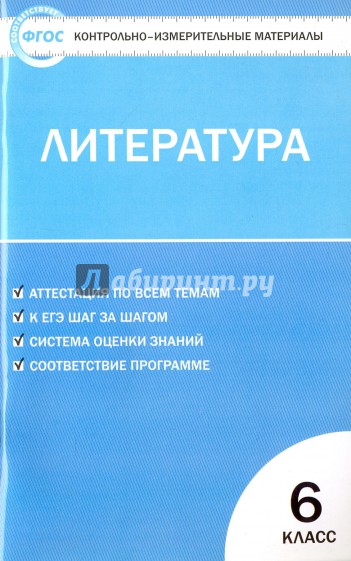 В пособии представлены контрольно-измерительные материалы (КИМы) по литературе для 6 класса. Тесты тематически сгруппированы, соответствуют школьной программе и требованиям ФГОС. Структура КИМов аналогична структуре тестов в формате ЕГЭ, что позволит постепенно подготовить учащихся к работе с подобным материалом. В конце пособия предложены ключи к тестам, а также самостоятельные работы и работы по развитию речи.