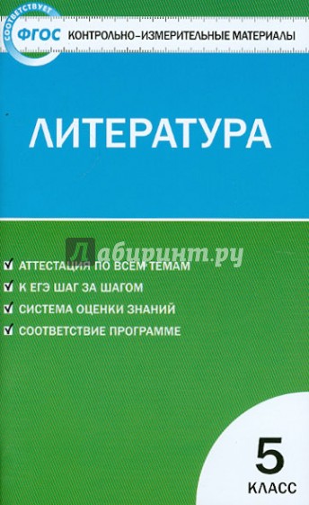 В пособии представлены контрольно-измерительные материалы (КИМы) по литературе для 5 класса. Тесты тематически сгруппированы, соответствуют требованиям школьной программы и возрастным особенностям учащихся. Структура КИМов аналогична структуре тестов в формате ЕГЭ, что позволит начать подготовку учащихся к работе с подобным материалом уже с 5 класса. В конце пособия предложены ключи к тестам, а также самостоятельные работы и работы по развитию речи.