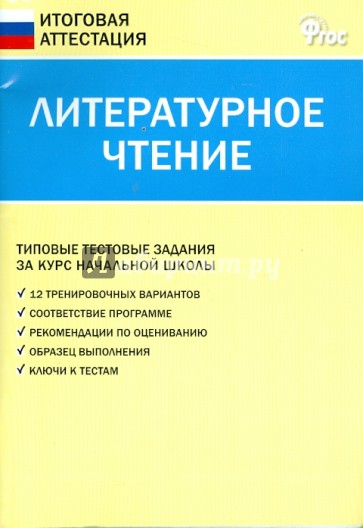 В издании представлены тесты для проведения итогового контроля знаний учащихся по литературному чтению за курс начальной школы. Сборник содержит 10 вариантов теста, в каждом из которых по 16 заданий, дифференцированных по двум уровням сложности и составленных в соответствии с учётом содержания Федерального государственного образовательного стандарта начального общего образования и требований к уровню подготовки учащихся. Приведён образец выполнения тестовой работы. В конце издания к заданиям даны ответы.