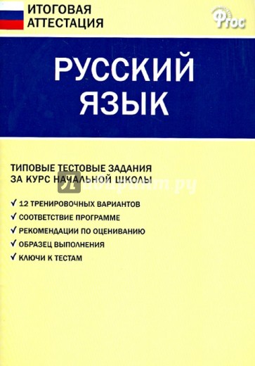 Пособие представляет собой сборник типовых тестовых заданий, предназначенных для проведения итогового контроля знаний учащихся по русскому языку за курс начальной школы. В каждом из 12 вариантов теста содержатся 16 заданий, дифференцированных по трем уровням сложности. Задания составлены с учетом содержания образовательного стандарта и полностью соответствуют требованиям к уровню подготовки учащихся. В конце книги даны ключи ко всем тестам и представлены варианты работ для проведения итогового контроля знаний в традиционной форме.