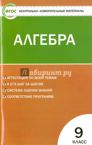 В пособии представлены контрольно-измерительные материалы (КИМы) по алгебре для 9 класса. Тесты тематически сгруппированы, соответствуют требованиям школьной программы и возрастным особенностям учащихся. Структура КИМов аналогична структуре тестов в формате ЕГЭ, что позволит постепенно подготовить учащихся к работе с подобным материалом. В конце пособия предложены тексты самостоятельных и контрольных работ, а также ключи к тестам.