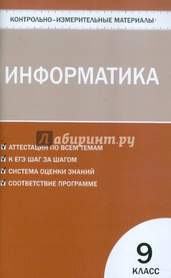 Представленные контрольно-измерительные материалы (КИМы) для 9 класса тематически сгруппированы, соответствуют требованиям школьной программы по информатике. Использование КИМов позволит не только оценить усвоение учащимися материала по теме, но и постепенно подготовить их к современной тестовой форме проверки знаний, что пригодится при выполнении заданий ЕГЭ. В конце издания предложены ключи к тестам.