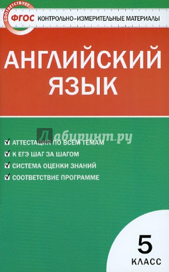Контрольно-измерительные материалы (КИМы) разработаны для учеников 5 класса, изучающих английский язык по учебнику М.З. Биболетовой и др. "Enjoy English". В пособие вошли лексико-грамматические тесты, тесты по чтению и аудированию, а также контрольные работы. В конце издания ко всем заданиям приведены ответы. КИМы составлены в соответствии с требованиями ФГОС.