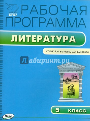Пособие содержит рабочую программу по литературе для 5 класса к УМК. Р.Н. Бунеева, Е.В. Бунеевой (М.: Баласс), составленную с опорой на материал учебника и требования Федерального государственного образовательного стандарта (ФГОС). В программу входят пояснительная записка, требования к знаниям и умениям учащихся, учебно-тематический план, включающий информацию об эффективных педагогических технологиях проведения разнообразных уроков: "открытия" нового знания, общеметодической направленности, рефлексии, развивающего контроля. А также сведения о видах индивидуальной и коллективной деятельности, ориентированной на формирование универсальных учебных действий у школьников.