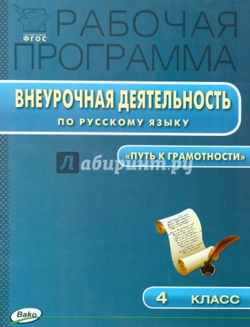 Пособие содержит рабочую программу внеурочной деятельности по русскому языку "Путь к грамотности" для 4 класса, составленную в соответствии с требованиями Федерального государственного образовательного стандарта. Программа является авторским оригинальным законченным курсом обучения проектной деятельности по русскому языку и предлагается в качестве альтернативы для реализации внеурочной деятельности. В комплект курса входит: Олейник О.В., Кабанюк Л.П. Проектная деятельность: методика обучения. Проекты по русскому языку. 2-4 классы. М.: ВАКО, 2014; Олейник О.В., Кабанюк Л.П., Яцко С.М. Проектная деятельность по русскому языку: рабочая тетрадь. 4 класс. М.: ВАКО, 2015.