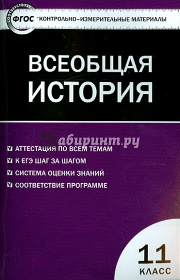 Представленные контрольно-измерительные материалы (КИ Мы) для 11 класса тематически сгруппированы, соответствуют требованиям школьной программы по истории и требованиям ФГОС. Использование КИМов позволит оценить уровень усвоении обучающимися каждой темы, а также подготовить их к тестовой форме проверки знаний, что пригодится при выполнении заданий ЕГЭ. В конце издания представлены ключи ко всем заданиям.