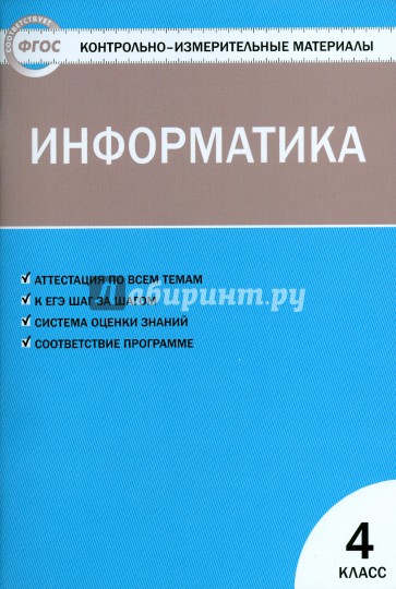 Представленные контрольно-измерительные материалы (КИМы) для 4 класса тематически сгруппированы, соответствуют требованиям школьной программы по информатике и требованиям ФГОС. Использование КИМов позволит оценить уровень усвоения обучающимися материала по каждой теме, а также подготовить их к тестовой форме проверки знаний, что поможет в дальнейшем успешно выполнить задания итоговой аттестации. В конце издания представлены ответы ко всем заданиям.