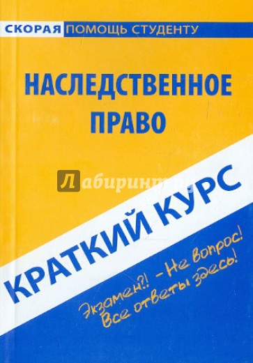 Настоящее издание представляет собой учебное пособие, подготовленное в соответствии с Государственным образовательным стандартом по дисциплине "Наследственное право". Материал изложен кратко, но четко и доступно, что позволит в короткие сроки успешно подготовиться и сдать экзамен или зачет по данному предмету.