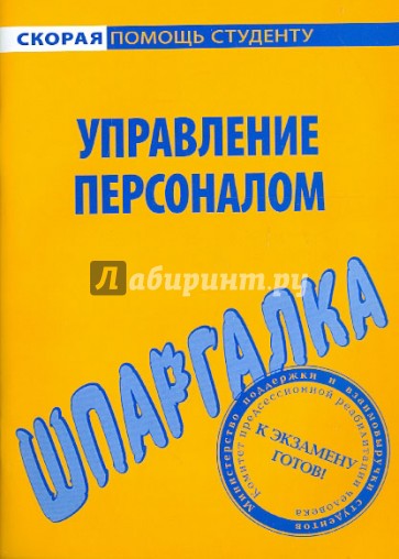 Настоящее издание представляет собой учебное пособие, подготовленное в соответствии с Государственным образовательным стандартом по дисциплине «Управление персоналом». Материал изложен кратко, но четко и доступно, что позволит в короткие сроки успешно подготовиться и сдать экзамен или зачет по данному предмету.