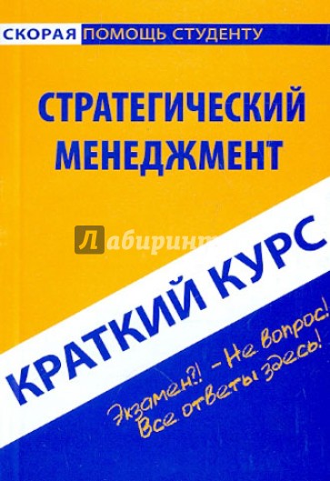 Настоящее издание представляет собой учебное пособие, подготовленное в соответствии с Государственным образовательным стандартом по дисциплине " Стратегический менеджмент". Материал изложен кратко, но четко и доступно, что позволит в короткие сроки подготовиться и успешно сдать экзамен и зачет по данному предмету. Издание предназначено для студентов высших образовательных учреждений.