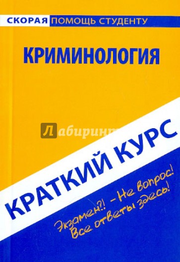 Настоящее издание представляет собой учебное пособие, подготовленное в соответствии с Государственным образовательным стандартом по дисциплине "Криминология". Материал изложен кратко, но четко и доступно, что позволит в короткие сроки успешно подготовиться и сдать экзамен или зачет по данному предмету.