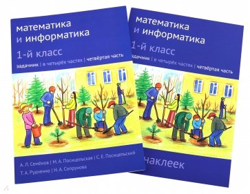 В комплект для третьего класса входят учебник в четырех частях и задачник в четырех частях и листы наклеек в четырёх частях.