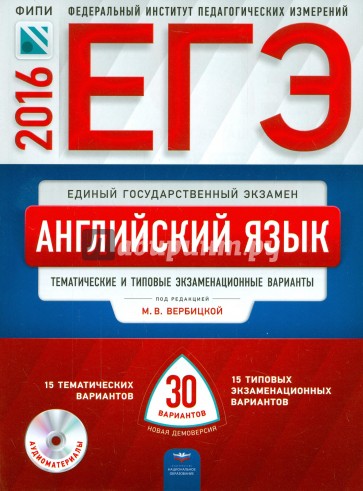 - 15 типовых экзаменационных вариантов, составленных в соответствии с проектом демоверсии КИМ ЕГЭ по английскому языку (письменная часть) 2016 года;