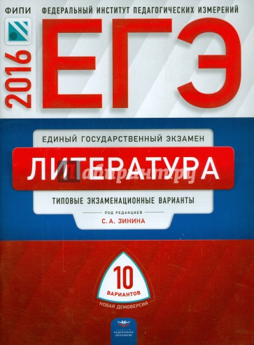 - 10 типовых экзаменационных вариантов, составленных в соответствии с проектом демоверсии КИМ ЕГЭ по литературе 2016 года;
