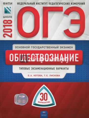 - 30 типовых экзаменационных вариантов, составленных в соответствии с проектом демоверсии КИМ ОГЭ по обществознанию 2018 года;