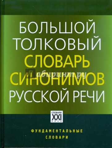 Большой толковый словарь синонимов русской речи - издание нового типа, отличающееся комплексным характером описания синонимических рядов слов. В нем впервые соединены принципы идеографических словарей (синонимические ряды располагаются по смысловым группам, то есть соотносятся с общим для них понятием), толковых, объяснительных словарей (дается толкование семантики, общей для всего синонимического ряда, а также семантики каждого отдельного слова - члена синонимического ряда) и учебных словарей-справочников (даются антонимы, близкие по смыслу фразеологизмы, указывается сочетаемость).