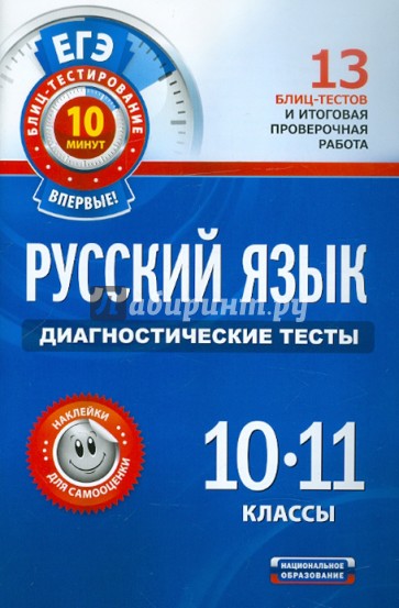 Пособие содержит материалы для проведения оперативной диагностики уровня освоения учебного материала в виде тестов по наиболее важным блокам всех тем курса русского языка 10-11 классов, форма заданий которых соответствует форме заданий экзаменационной работы единого государственного экзамена (ЕГЭ). Каждый тест представлен в двух вариантах. На выполнение одного варианта отводится не более 10 минут. В конце пособия помещён итоговый тест, состоящий из заданий всех тем курса.