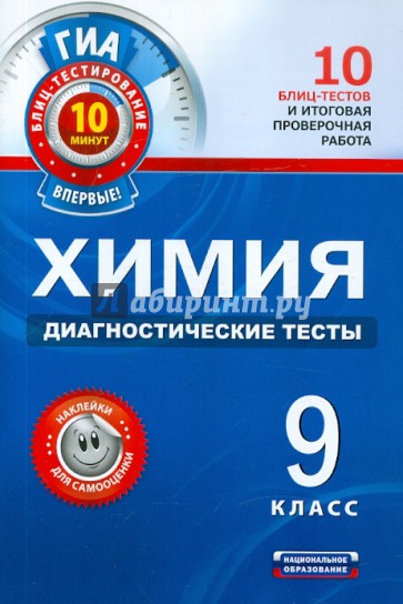 Пособие содержит материалы для проведения оперативной диагностики уровня освоения учебного материала в виде тематических тестов по наиболее важным блокам всех тем курса химии 9 класса, форма заданий которых соответствует форме заданий экзаменационной работы государственной итоговой аттестации (ГИА). Каждый тест представлен в двух вариантах. На выполнение одного варианта отводится не более 10 минут. В конце пособия помещён итоговый тест, состоящий из заданий всех тем курса.