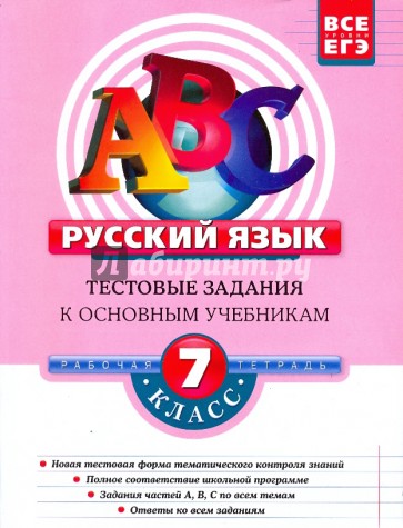 Рабочая тетрадь предназначена для тематического контроля знаний учащихся в новой тестовой форме (задания трех уровней сложности - частей А, В, С) на уроках русского языка, а также для самостоятельного контроля знаний и систематической тренировки.