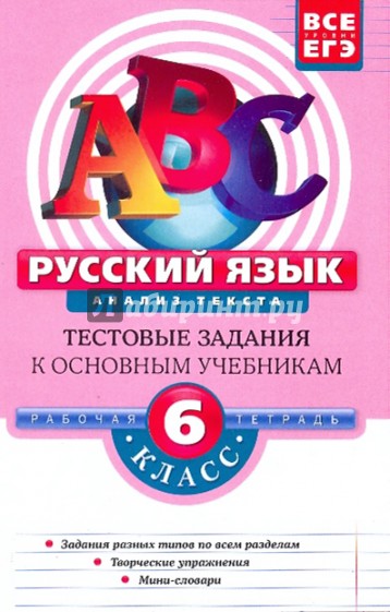 Данное издание представляет собой рабочую тетрадь по анализу текста, содержание которой соответствует школьной программе по русскому языку для 6-го класса. В пособие включены задания по всем разделам науки о языке, а также творческие упражнения, способствующие развитию речи. В приложении приводятся мини-словари (толковый, синонимов, антонимов, устойчивых выражений), составленные по материалам упражнений.