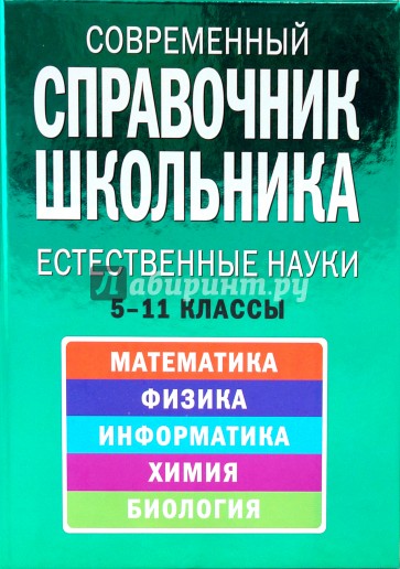 В современном справочнике школьника представлена полная информация по основным естественнонаучным предметам школьного курса: математике, физике, информатике, химии и биологии.