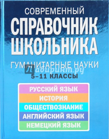 В современном справочнике школьника представлена полная информация по основным гуманитарным предметам школьного курса: русскому языку, истории, обществознанию, английскому и немецкому языкам.