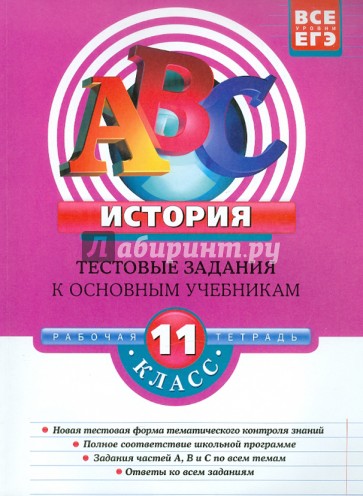 - задания в тестовой форме, аналогичной ЕГЭ, по всем темам 11-го класса
