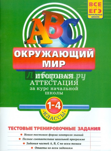 Пособие подготовлено в соответствии с требованиями Федерального государственного образовательного стандарта второго поколения для начальной школы. Тестовые задания построены на основе принципов ЕГЭ и ориентированы на проверку, контроль и оценку знаний младших школьников по учебному предмету "Окружающий мир" за первые 4 года обучения.