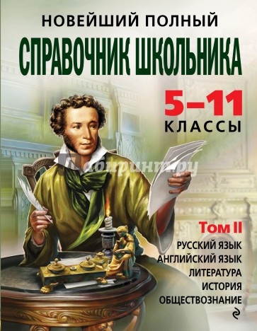 В новейшем справочнике школьника представлена полная информация по основным школьным предметам: математике, физике, химии, биологии, географии (том I) и русскому языку, литературе, истории, обществознанию, английскому языку (том II). Издание подготовлено в полном соответствии с современными требованиями школьной программы. Материал излагается последовательно по темам, каждый раздел содержит задания для самоконтроля, иллюстративный материал (схемы, таблицы, графики), что позволит школьникам успешно подготовиться к урокам, контрольным и самостоятельным работам, а также к ЕГЭ. Диск с интенсивным тренинг-курсом подготовки к ЕГЭ поможет учащимся повторить изученный материал по всем предметам.