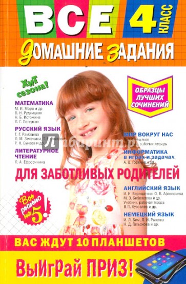 Пособие содержит подробные решения, комментарии, пояснения всех домашних заданий ко всем основным учебникам, рекомендованным Министерством образования и науки РФ, по русскому языку, математике, литературному чтению, окружающему миру, информатике, английскому и немецкому языкам.